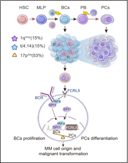 图注:多发性骨髓瘤细胞起源机制图