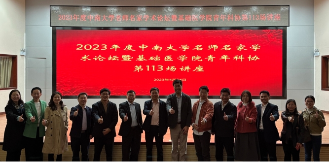 2023年4月24日上午10点,学院在湘雅医学院新校区图书馆一楼学术报告厅举办了“中南大学名师名家学术论坛暨基础医学院青年科协第113场学术讲座”,三位国家杰出青年科学基金获得者做客现场,并带来了精彩的专题学术讲座,三位专家分别是中山大学教授、教育部“CJ学者”特聘教授康铁邦,昆明医科大学研究员、科技部重点研发计划项目首席科学家陈策实,清华大学教授、医学院副院长兼党委副书记程功。本次论坛由殷刚副院长主持,三位专家传道授业,深入浅出,在场师生求知若渴,积极探讨,讲座现场座无虚席,气氛热烈。