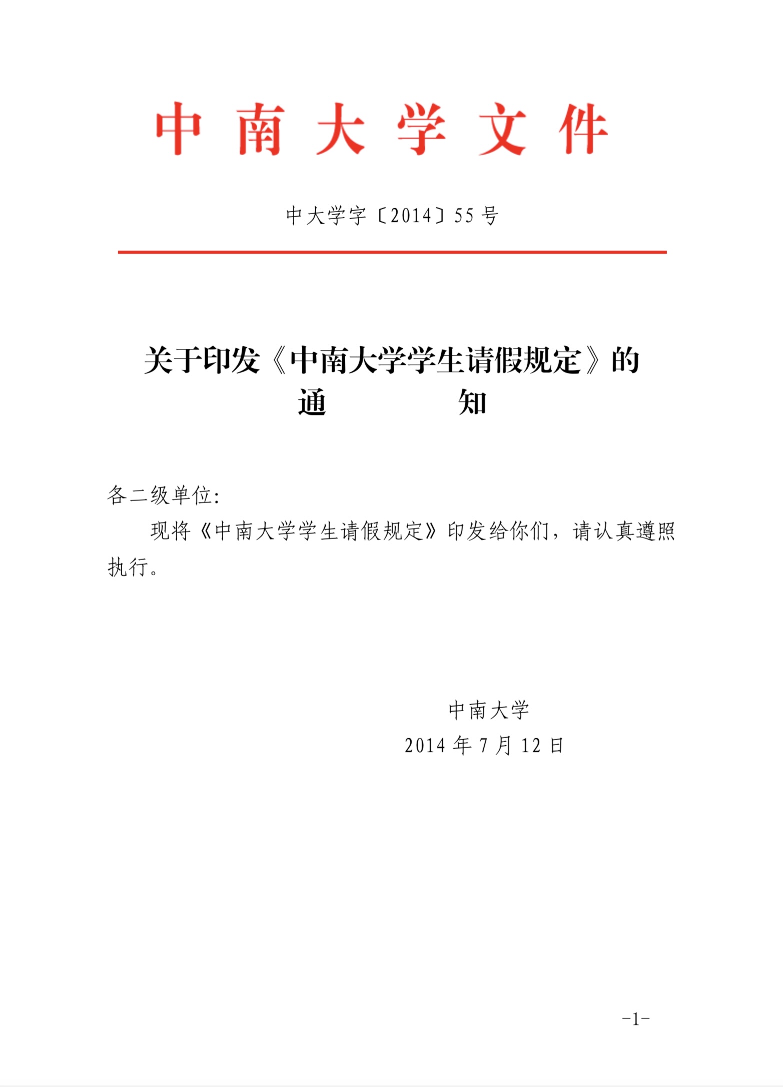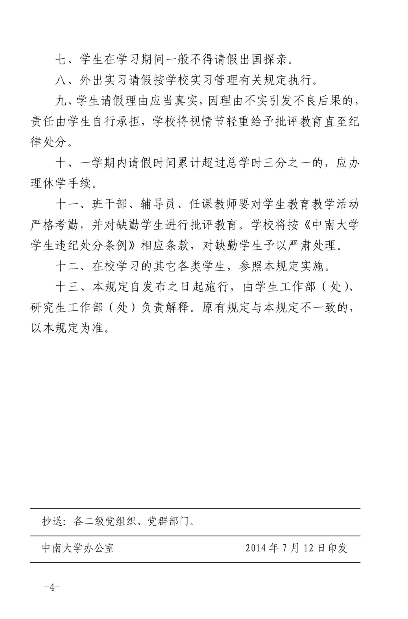 中南大学学生请假规定