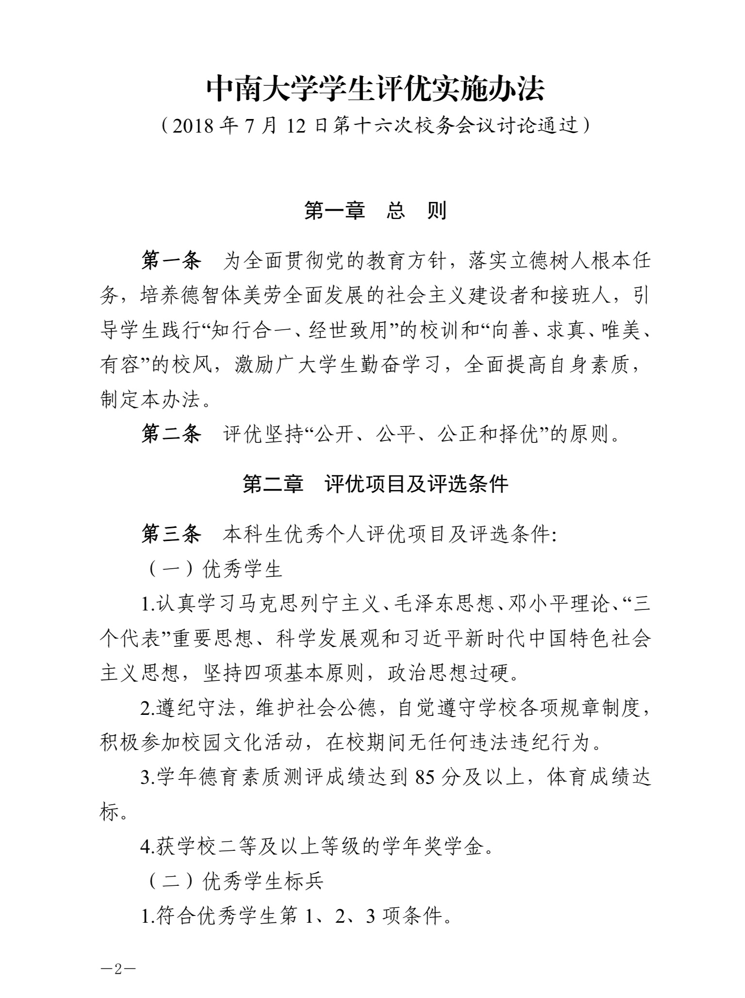 中南大学学生评优实施办法