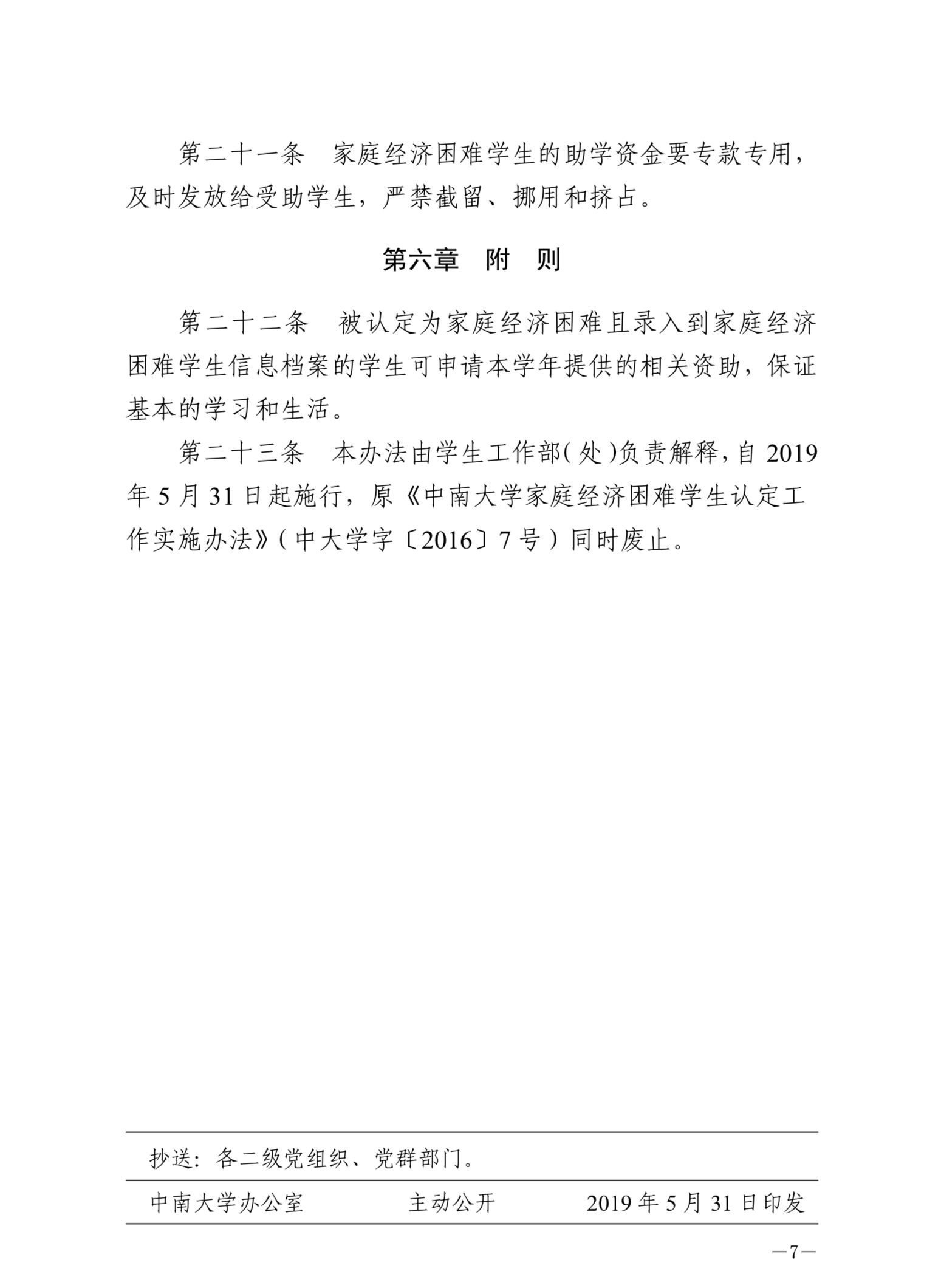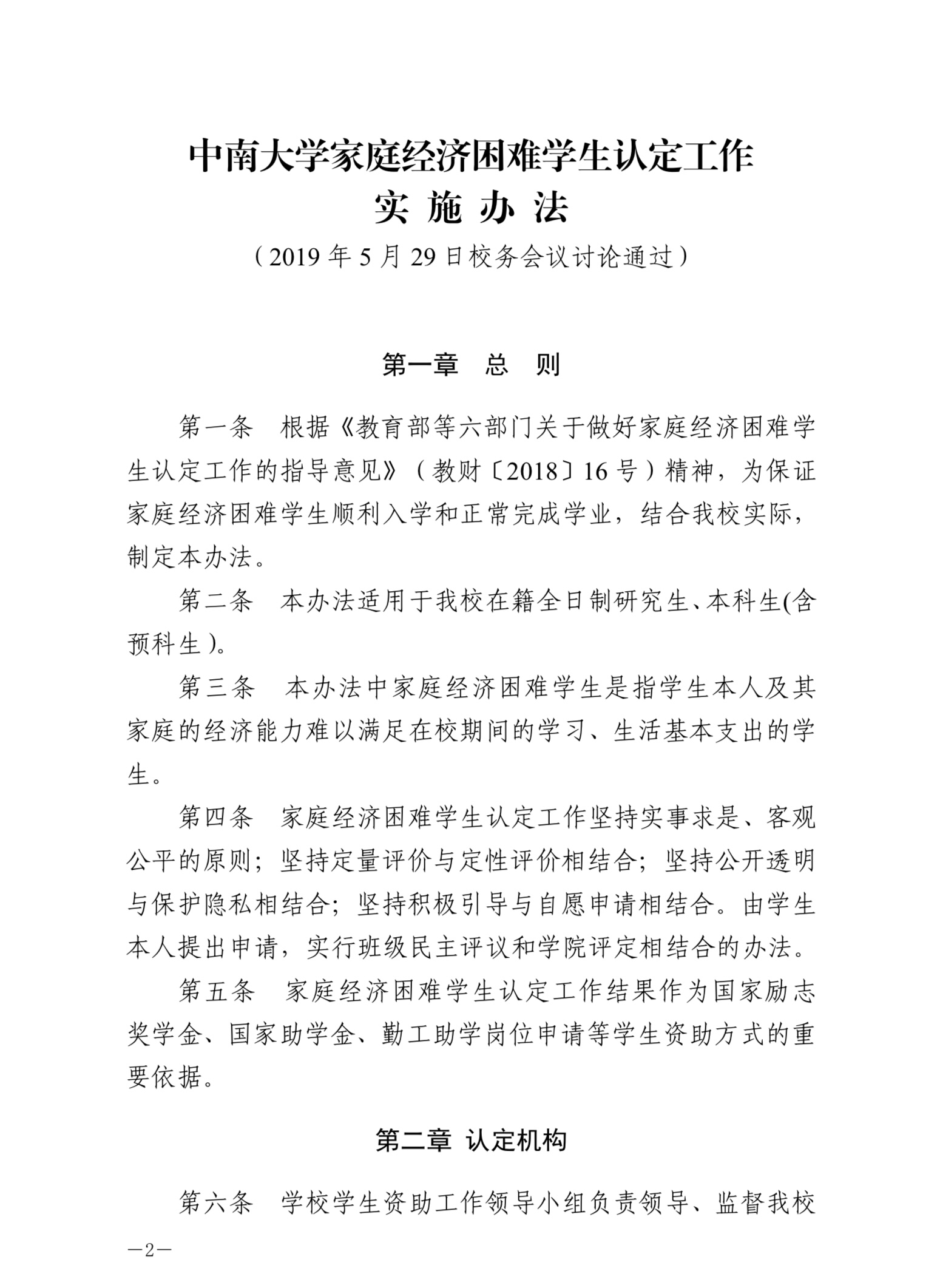 中南大学家庭经济困难学生认定工作实施办法