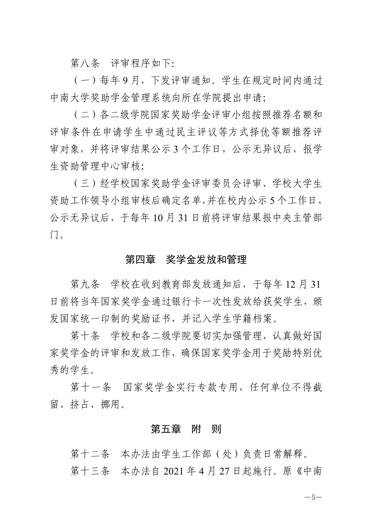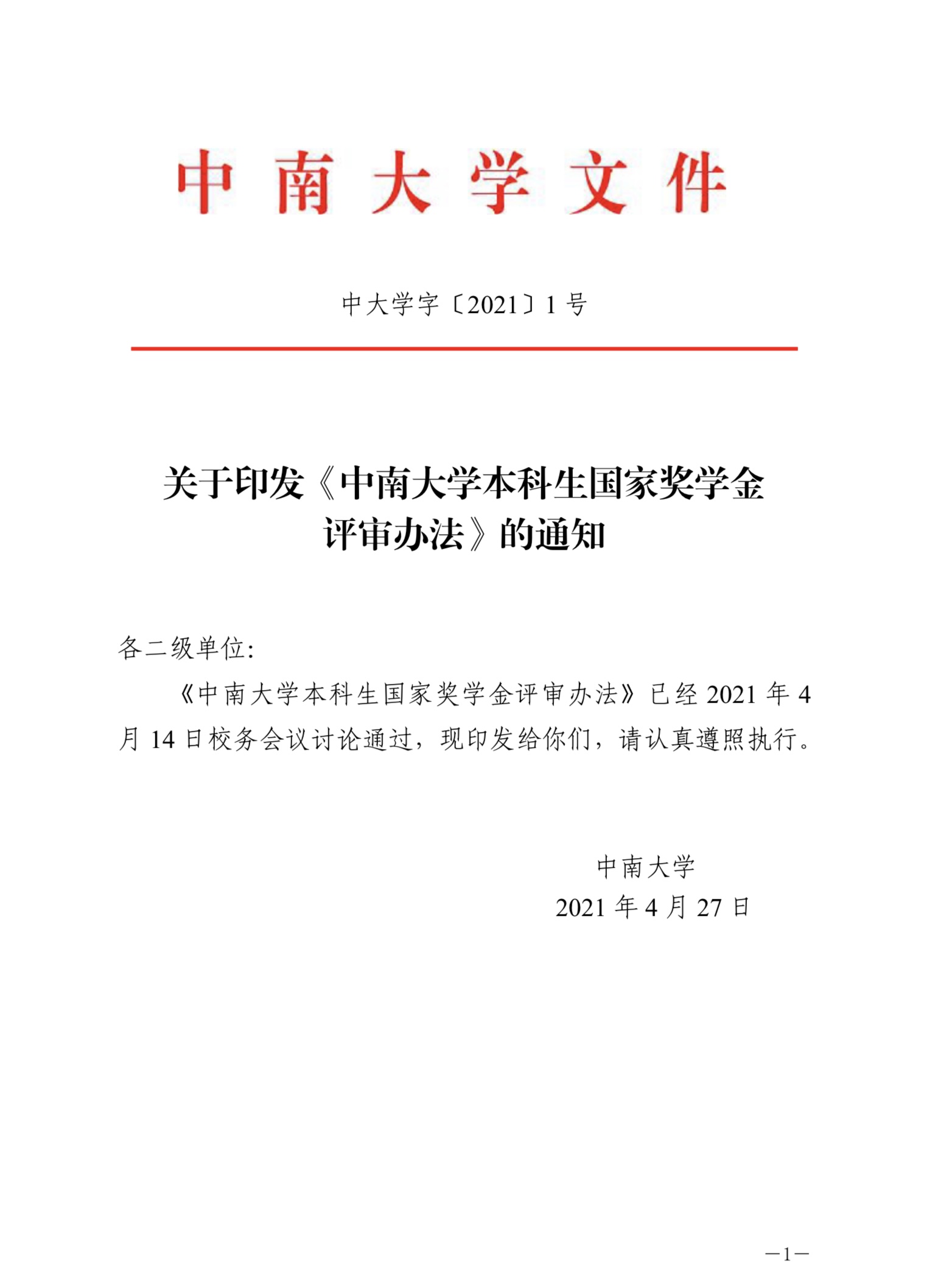 中南大学本科生国家奖学金评审办法