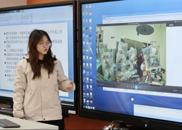 在随后的报告厅分享会上,各学科小组结合前期走访中南大学湘雅附三医院的调研成果展开深度交流。神经外科小组介绍了神经外科以及脑机接口的相关知识;肿瘤小组展示了未来医疗器械更新趋势;皮肤科小组则从对皮肤科科研组会内容进行了细致的分享;移植科小组围绕器官移植后免疫监测难题,提出了患者对便携式血样检测仪的新需求;病理科小组通过图片展示介绍了病理科的工作流程,探讨人工智能在病理检验的应用。此外,还有一组同学走进手术室参观手术机器人的手术过程,分享医生与机器人的交互场景,并提出了手术机器人的改进方案。