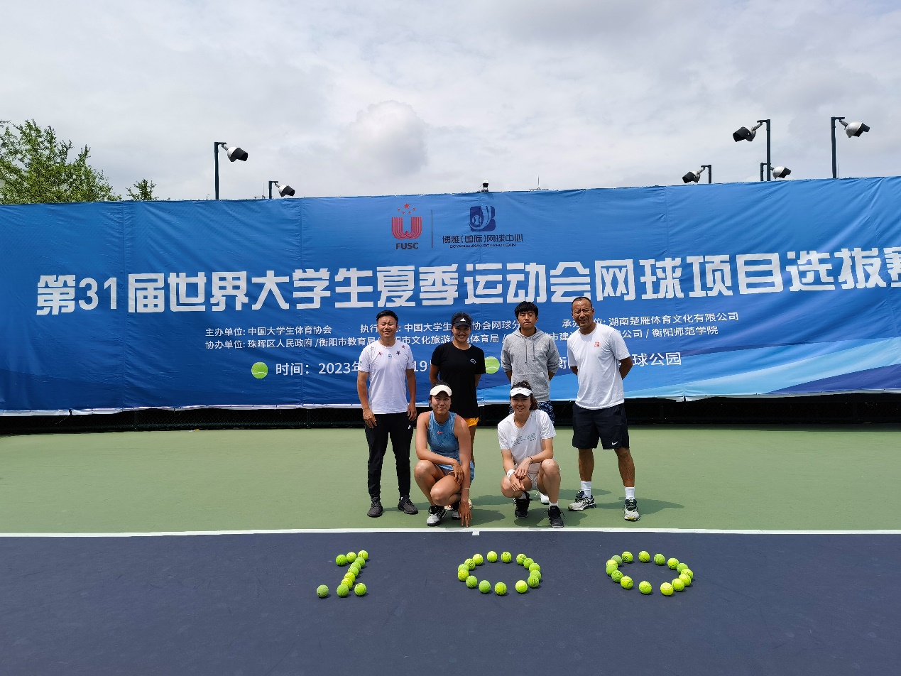 当天也恰逢第31届世界大学生夏季运动会开幕倒计时100天,西南大学网球代表队在用网球组成的100数字前合影留念,为第31届世界大学生夏季运动会送上祝福。
