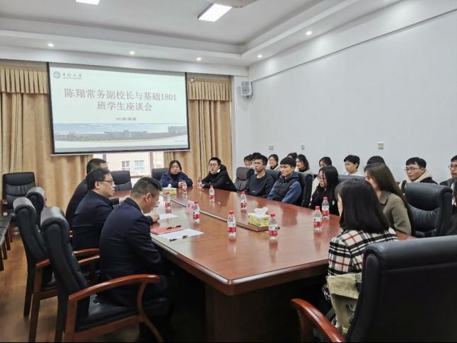 会后,陈校长与新联系的基础2101班全体同学见面并与基础医学1801班同学座谈。见面会上,他激励同学们要树立起对基础医学专业的热爱,鼓励同学们积极参与科研实践活动,提高基础研究的创新能力,并向同学们发出参观自己实验室的邀请。座谈会上,他仔细了解了基础1801班同学们的毕业去向,对班级升学率在超过90%十分欣慰,用亲身经历勉励同学们珍惜宝贵的在校时光,努力练就过硬本领,也希望同学们学成后常回湘雅。