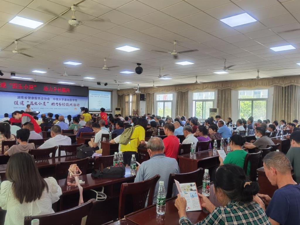 活动中,中南大学10余位专家教授不顾高温、随团出征,围绕高血压、消化道和肿瘤疾病等常见慢性病,为200多名村民提供自我健康管理指导。其中,湘雅名医沈守荣教授深入宁乡市第三人民医院查房、开展义诊咨询,并对参加活动的基层医务人员和乡村医生开展“床边教学”,勉励他们一定要围绕临床需要和群众实际来不断提升专业服务能力。肿瘤研究专家马健教授针对肿瘤防治开展健康知识科普讲座。