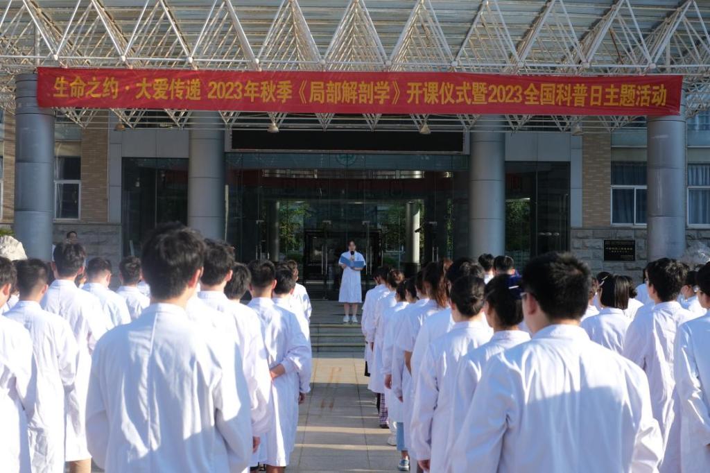 9月19日清晨,我院“生命之约·大爱传递”2023年秋季《局部解剖学》开课仪式在湘雅新校区福庆楼前坪广场隆重举行。中南大学党委常委、常务副校长、湘雅医学院院长陈翔教授,基础医学院党委书记王慷慨教授、院长熊炜教授、副院长黄河教授,湖南省解剖学会理事长潘爱华教授,中南大学基础医学院教工第一支部全体党员,《局部解剖学》全体任课教师,湘雅医学院临床医学八年制2020级、卓越医生班2021级全体学生与来自湖南师范大学医学院、长沙卫生职业学院、湖南中医药大学、湖南中医药高等专科学校、长沙爱尔眼科角膜捐献中心等单位的代表共计150余人参加仪式。