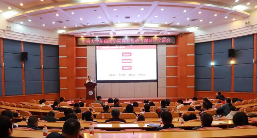 11月29日下午,基础医学院在福庆楼四楼学术报告厅召开以“立德树人,厚植医学情怀——推动学院课程思政高质量发展”为主题的课程思政专题研讨交流会。中南大学本科教学督导委员会副主任委员秦毅红教授出席会议,学院全体领导班子成员和80多名教师参加。会议由郭亚东副院长主持。