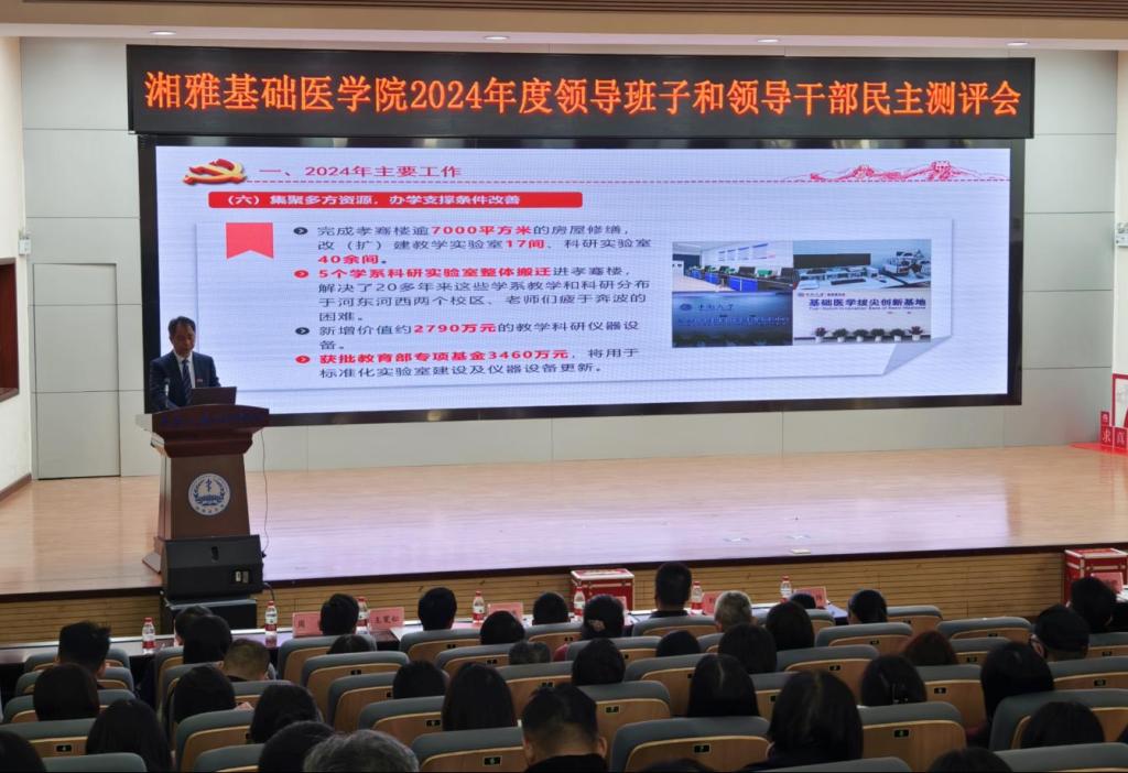 湘雅基础医学院召开2024年度领导班子和领导干部民主测评会、 第六届二次双代会暨年终表彰大会