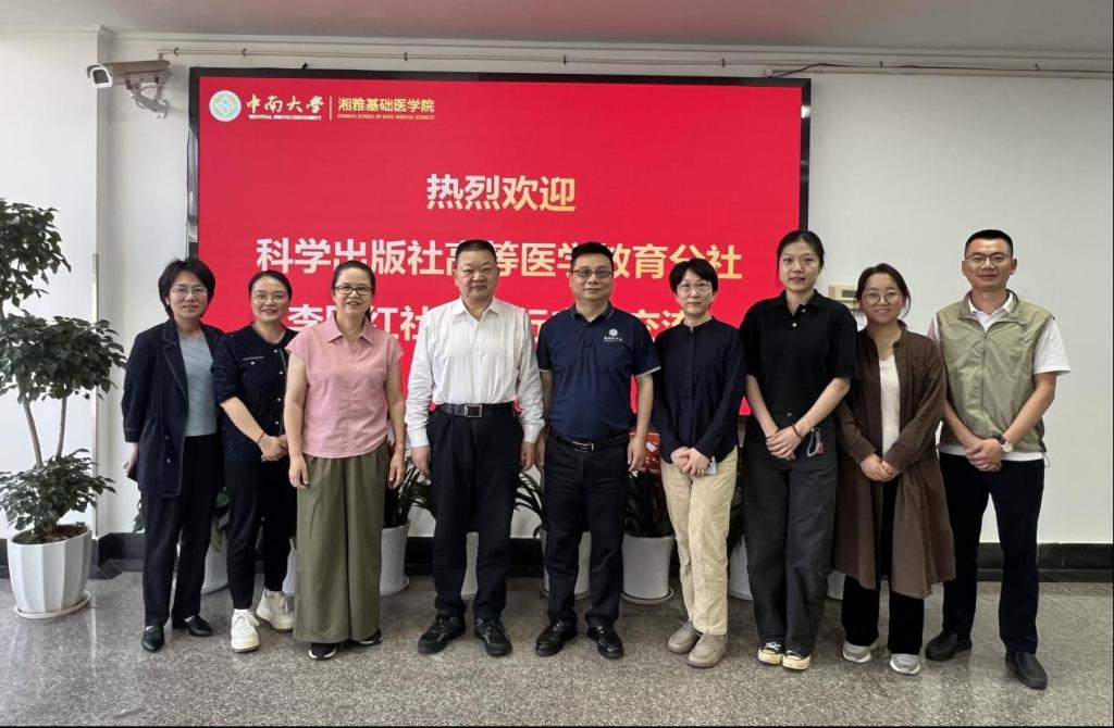 4月25日下午,科学出版社高等医学教育分社社长李国红一行到访中南大学湘雅基础医学院,双方在中南大学杏林校区孝骞楼711会议室召开座谈会。湘雅基础医学院党委书记王慷慨,副院长刘俊文,黄菊芳、向娟娟、刘持、凌江、尚晓敏老师参加座谈,会议由王慷慨书记主持。