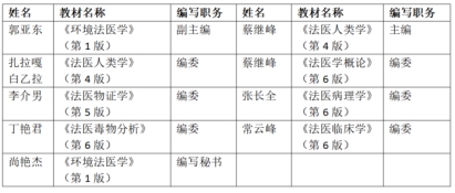 全国高等学校法医学专业第六轮规划教材是国家卫生健康委员会“十五五”规划教材的重要组成部分,该系列教材将服务新时代法医人才培养需求,推动构建更加系统、科学、前沿的法医学教育体系。法医学系蔡继峰教授受聘担任《法医人类学》(第4版)主编,郭亚东教授受聘担任《环境法医学》(第1版)副主编,法医学系共有9人次参与本轮教材编写工作。