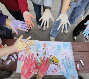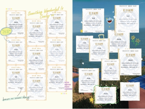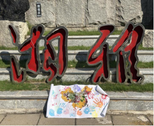 同学们沿途拾取秋叶,于山顶共同拼贴“山河锦绣”主题画作,并按下手印,表达对祖国的热爱与青春誓言。活动吸引众多游客驻足参与,现场氛围热烈庄重,充分展现了新时代青年的责任与担当。